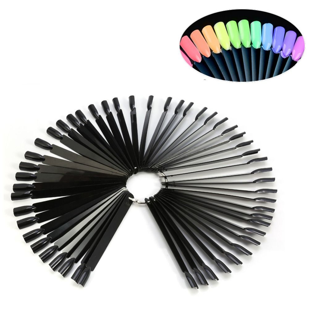50pcs Black False Nail Art Display Fan Shape Wheel Pallet Nail Tips Board Practice Fold Able Diy Showing Nail Polish Gel Glitter