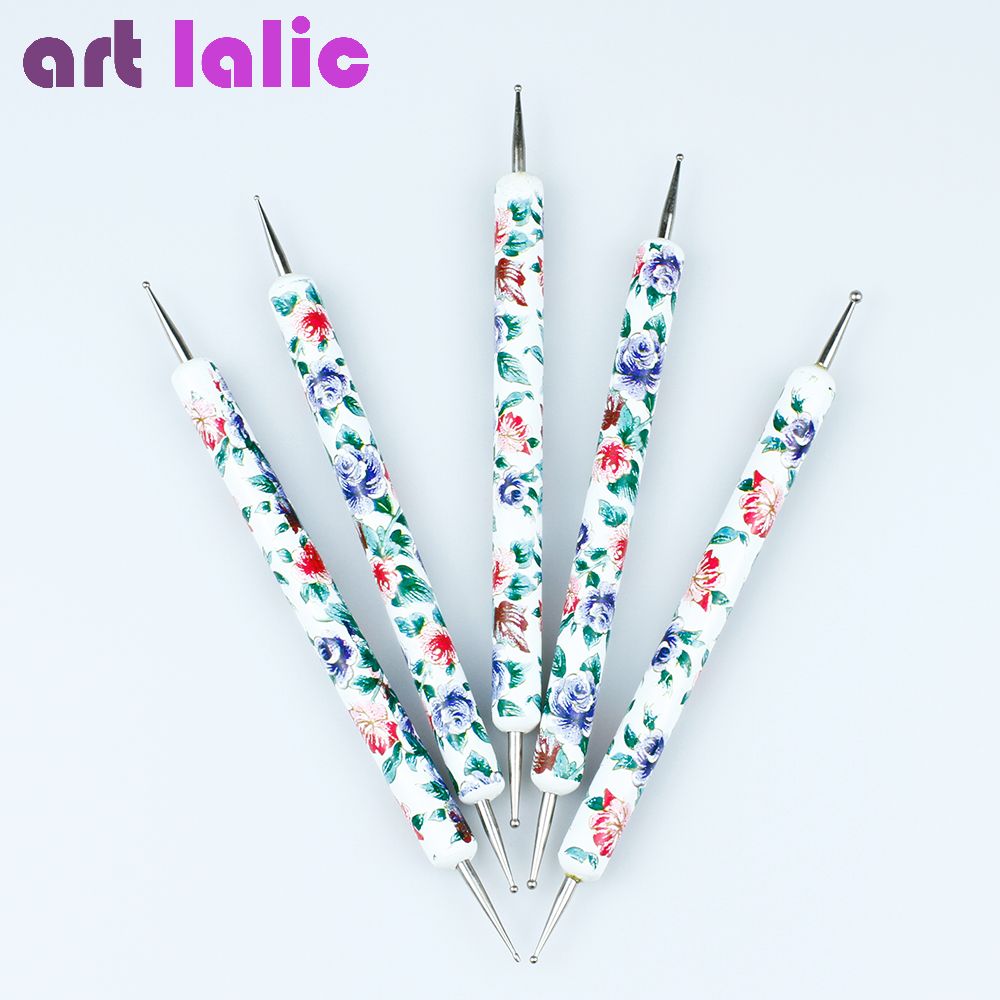 Nail Dotting Pen Set 5 X 2 Ways Nail Art Tool Dot Kit Acrylic Handle