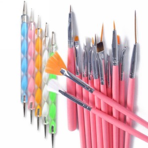 20pcs Nail Art Brush Dotting Pen Tips Paint Draw Builder Flat Fan