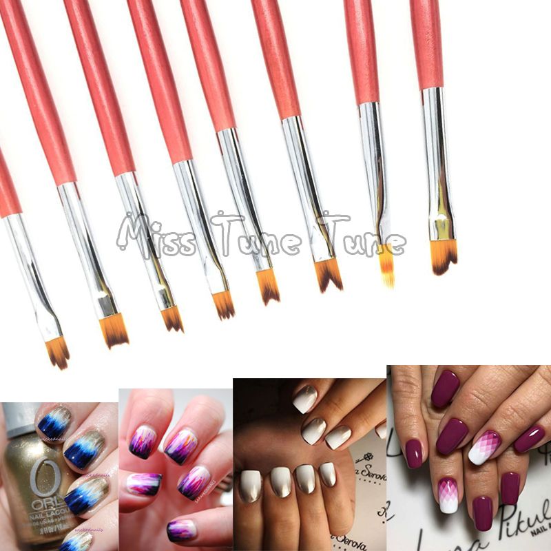 8pcs 3d French Nail Art Diy Painting Drawing Brush Set Acrylic Uv