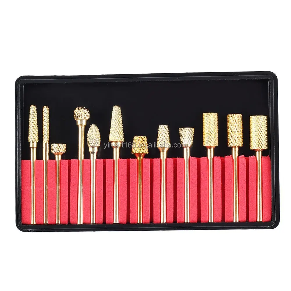 Yimart 12pcs Gold Nail Art Drill Bits Electric Nail File Diamond