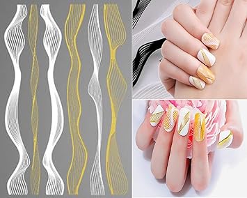 Amazon Com Banamic Gold Black White Nail Stickers Decals 3d Wave