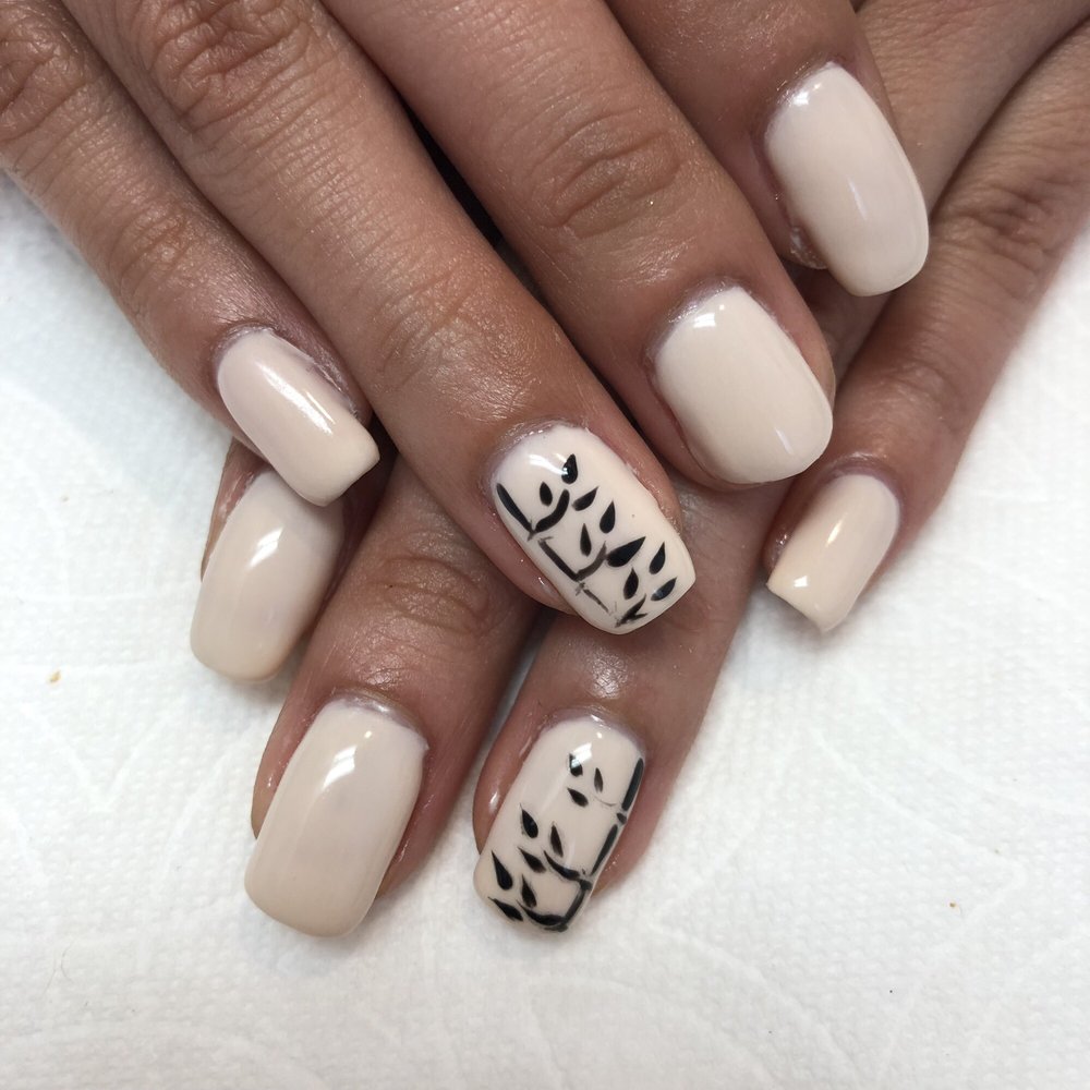Natural Nails With Gel Polish And Hand Painted Nail Art Of Black
