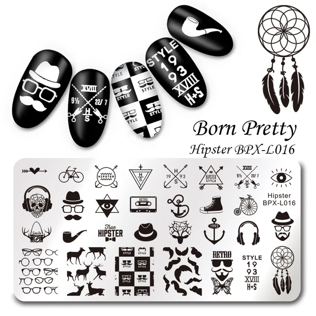 Us 1 99 Born Pretty Rectangle Nail Stamping Template Men Hipster Manicure Nail Art Image Plate In Nail Art Templates From Beauty Health On