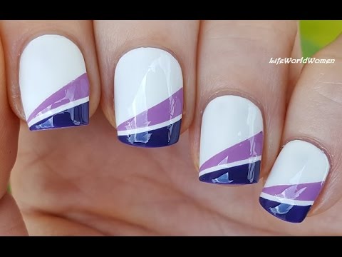 Tape Nail Art 3 Purple Gradient French Tips On Short Nails Youtube