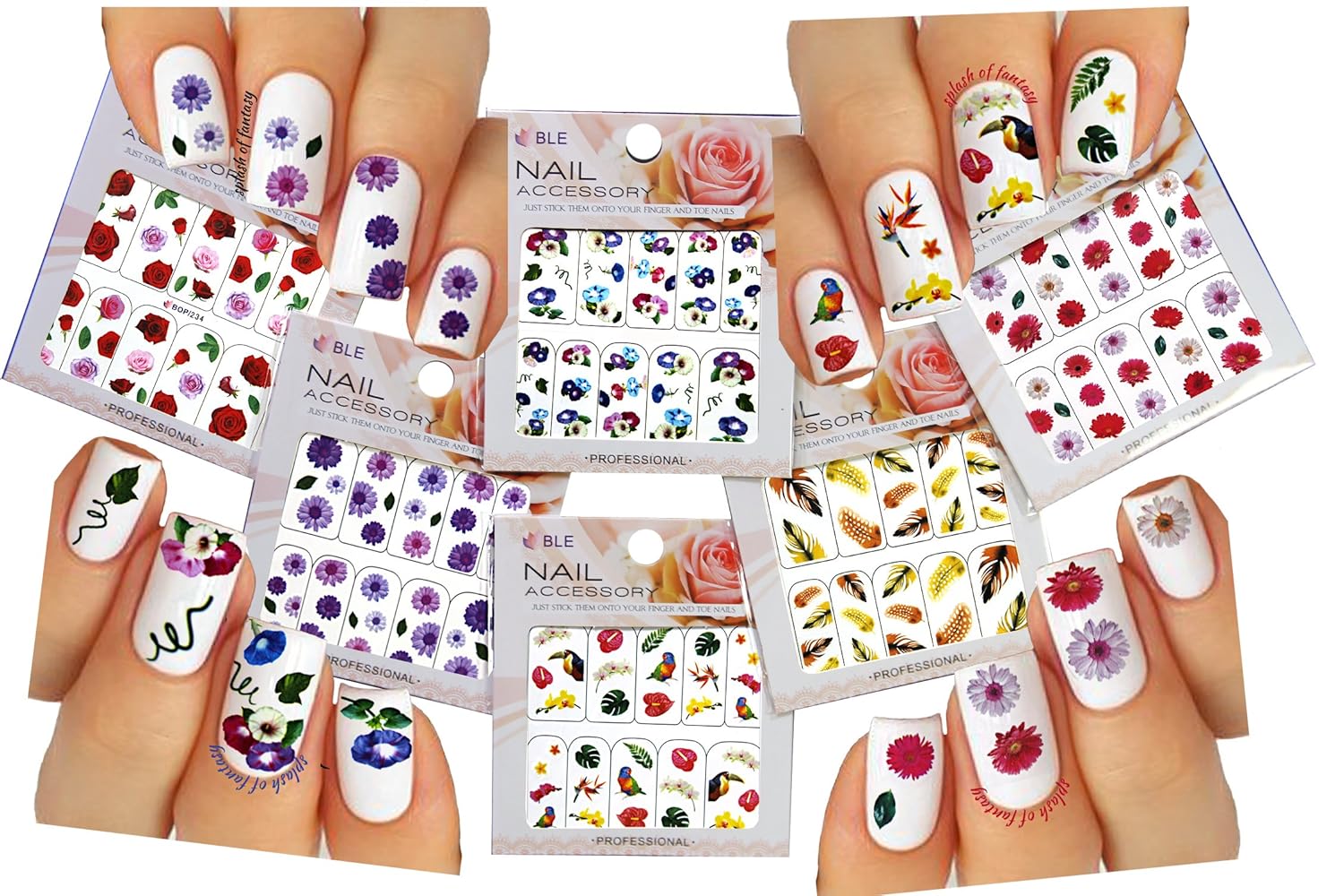 Amazon Com Flowers Birds Feather Nail Art Water Slide Tattoo