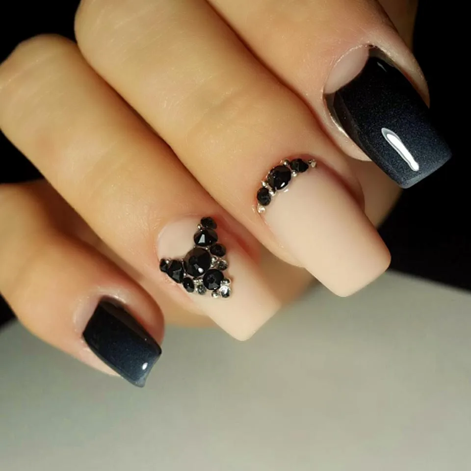 Mix Black Rhinestones On Nails Glass Rhinestones For Nails Design