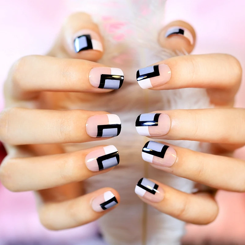 French Fashion Geometric Style False Nails 24pcs Patch Shape Light