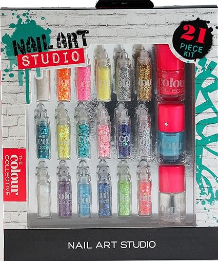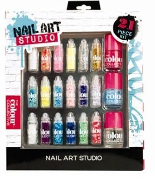 Nail Art Studio 21 Piece Glitter Studs And Nail Polish Dazzling Gift