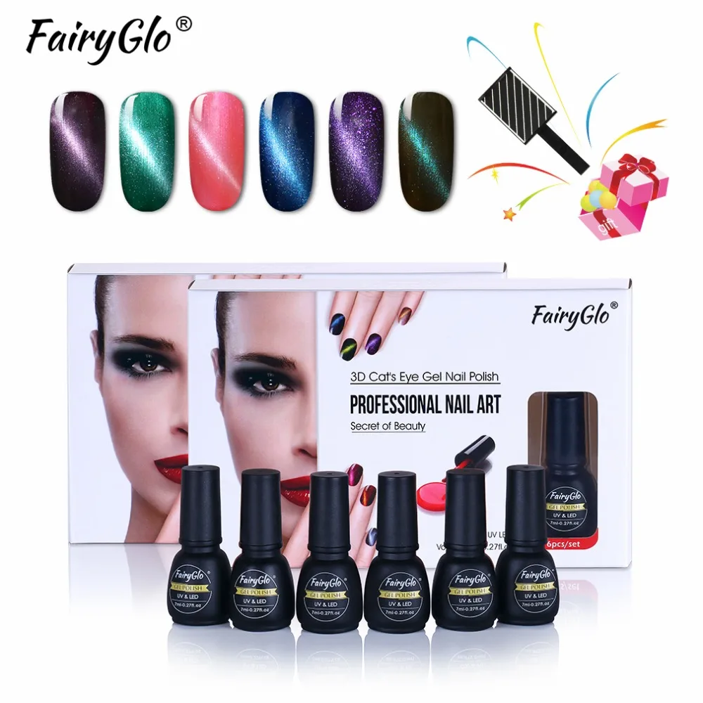 Us 10 39 20 Off Fairyglo Nail Art Gift Set 6pcs Gel Nail Polish Cat Eye Gel Polish 7ml Uv Lamp Gel Polish Paint Gellak Hybrid Varnish Nail Set In
