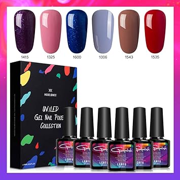 Modelones Gel Nail Polish Set Glitter Blue Purple Series 6 Colors Nail Art Gift Set Uv Led Soak Off Gel