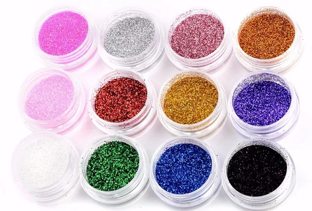 12 Colors Mix Uv Gel Nail Art Glitter Dust Powder For Uv Gel Acrylic