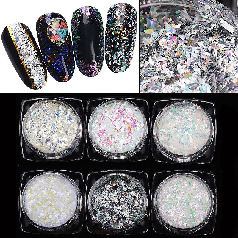 6 Styles Galaxy Broken Flakes Nail Art Glitters Gradient Transparent