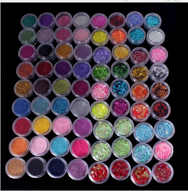 72pots X Nail Art Glitter Iridescent Holographic Chunky Fine Mixed