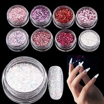Amazon Com Nail Art Glitter 1 Set 8boxes Pink Colors Shiny Nail