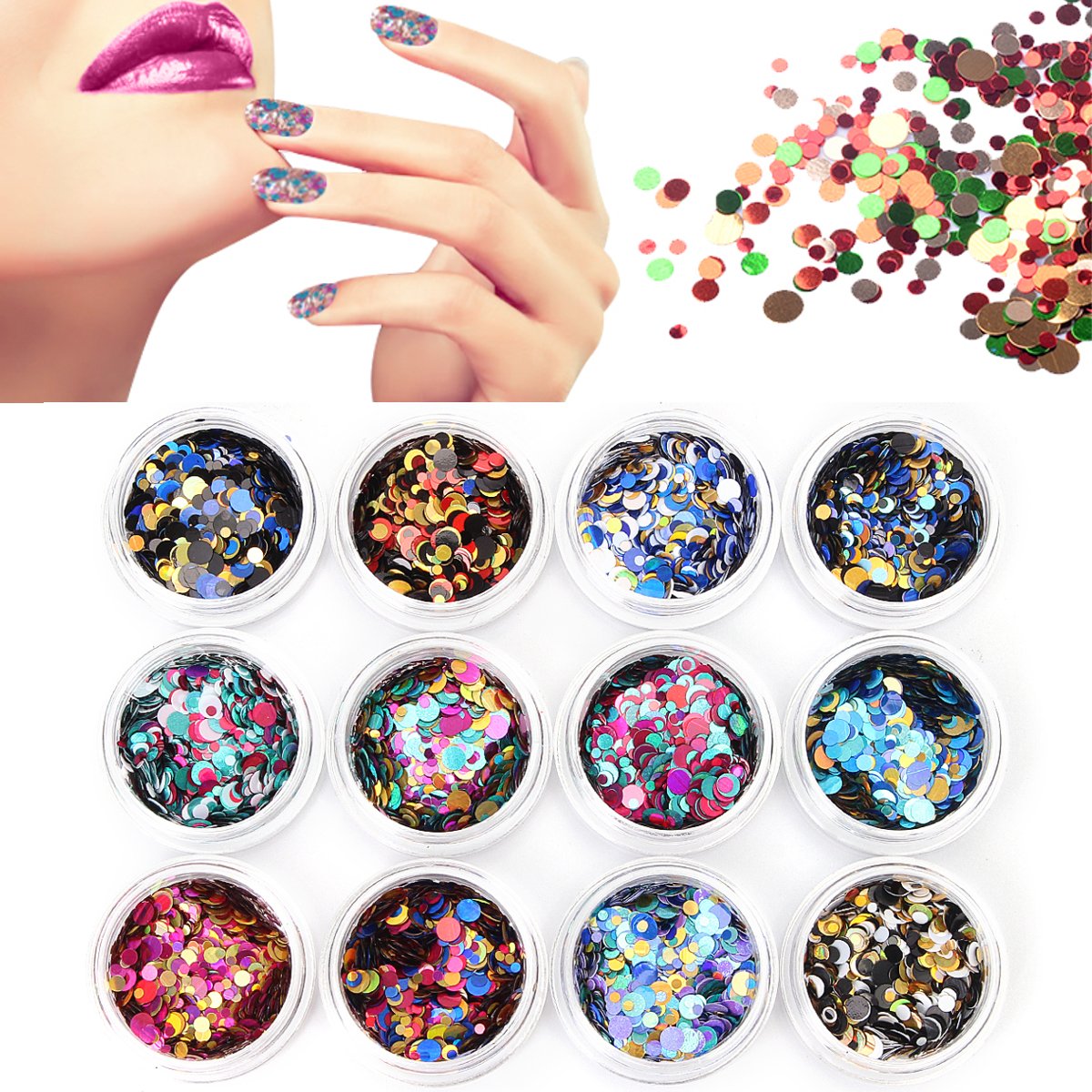 12pcs Set Multi Mini Round Nail Art Glitter Paillette Manicure
