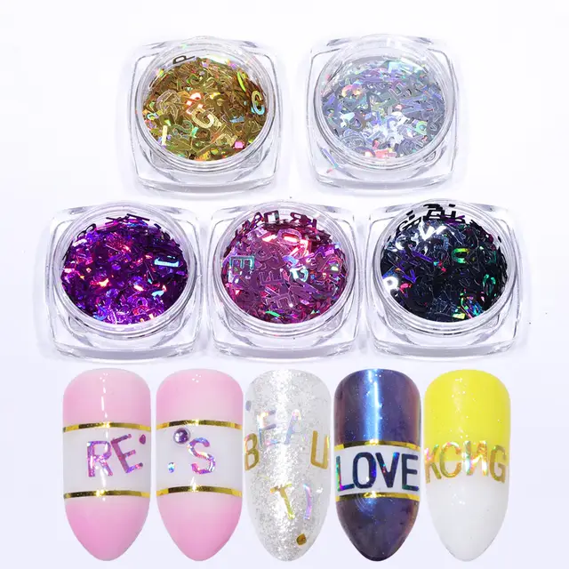 Online Shop 5pcs Lot Laser Nail Art Glitter Sequins Alphabet Letter
