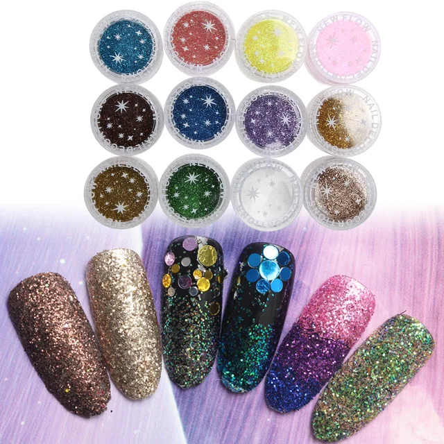 12 Color Metal Glitter Nail Art Tool Kit Acrylic Uv Powder Dust My