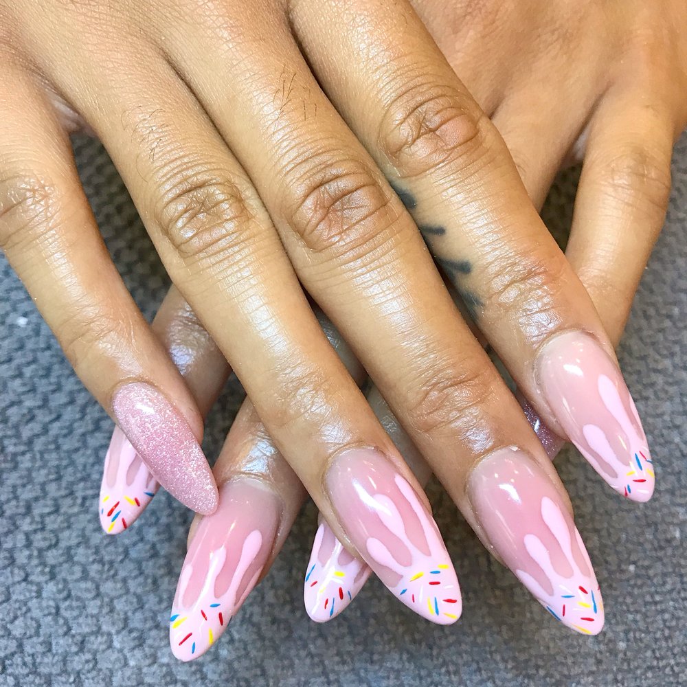 Sculptured Acrylic Nails With Hand Painted Doughnuts Nailart New