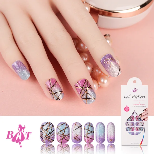 Us 0 38 1 Sheets 12 Patterns Holo 3d Nail Sticker Gold Silver Laser Aurora Line Adhesive Hologram Sticker Holographic Nail Tips Nail Art In Stickers