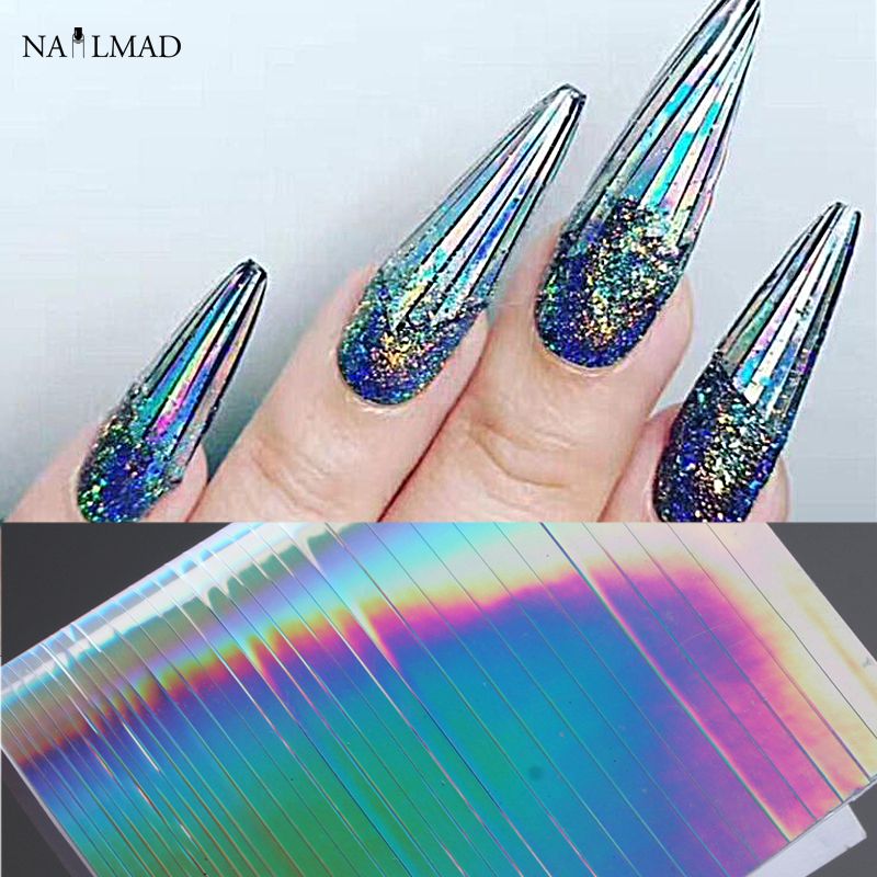 1 Sheet Nailmad Holo Nail Art Stickers Ultra Thin Laser Sticker Silver Stripe Line Nail Strip Tape Diy Foil Decals Art Tips
