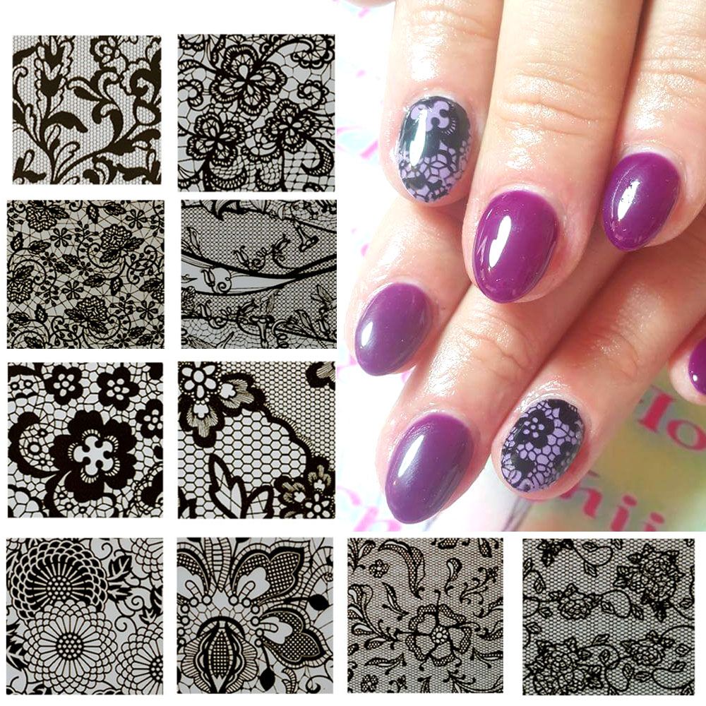 10 Designs Sets 3d Sexy Black Colors Nail Art Holo Lace For Nail Art Tips Adhesive Sticker Transfer Foils Diy Wraps Lb01 10