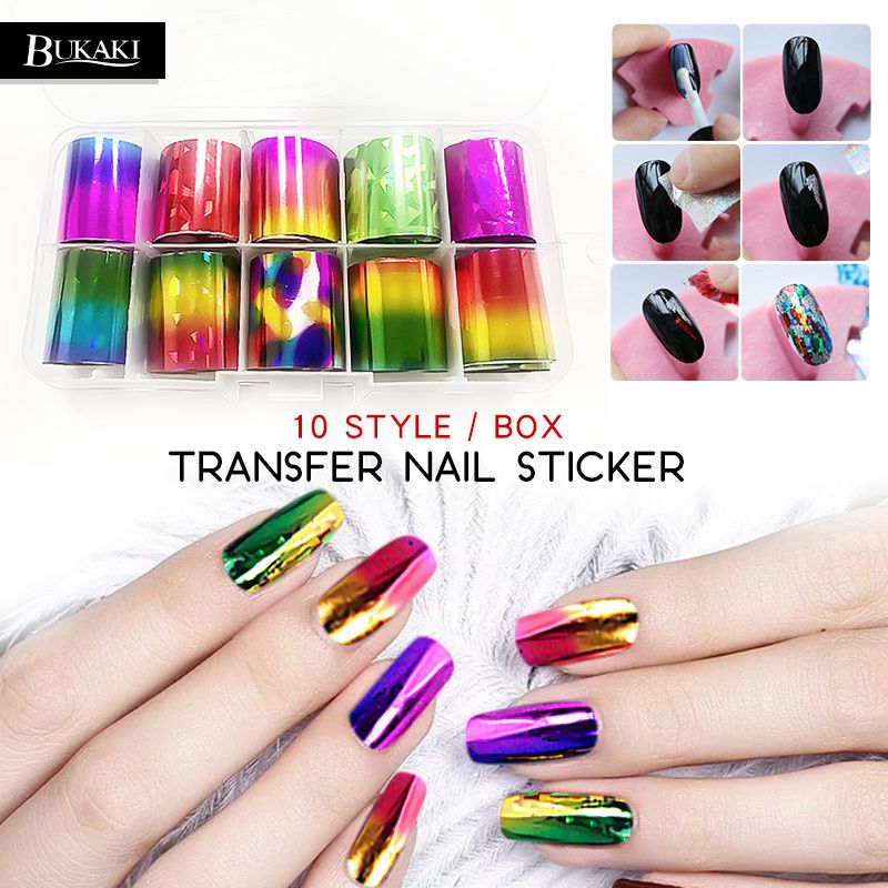 Bukaki 10pcs Holographic Nail Foil Set Transparent Nail Art 3d Transfer Sticker Manicure Diy Holo Sticker Decoration