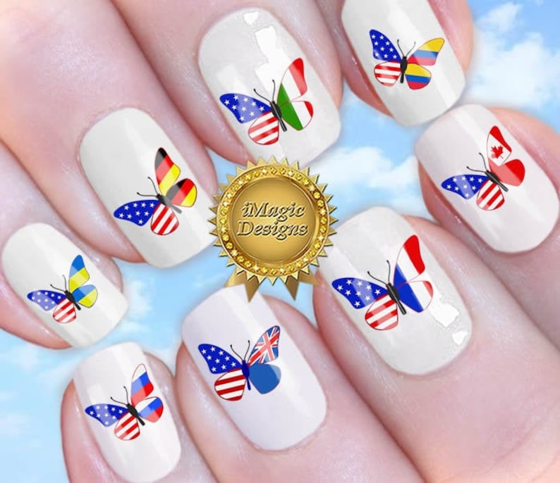 Nail Art Decals Stickers Nail Transfer Double Flag Etsy