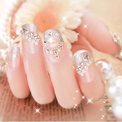 Stylish Wedding Bridal Nail Jewelry French Nails Rhinestone Nail Art