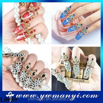 New Arrival Wholesale Fashion Crown Crystal Finger Nail Art Ring