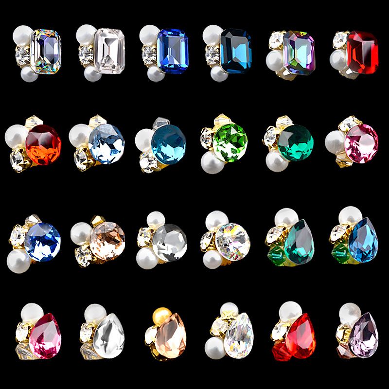 Ab Glitter Crystal Nail Charm Wheel Rectangle Pear Waterdrop