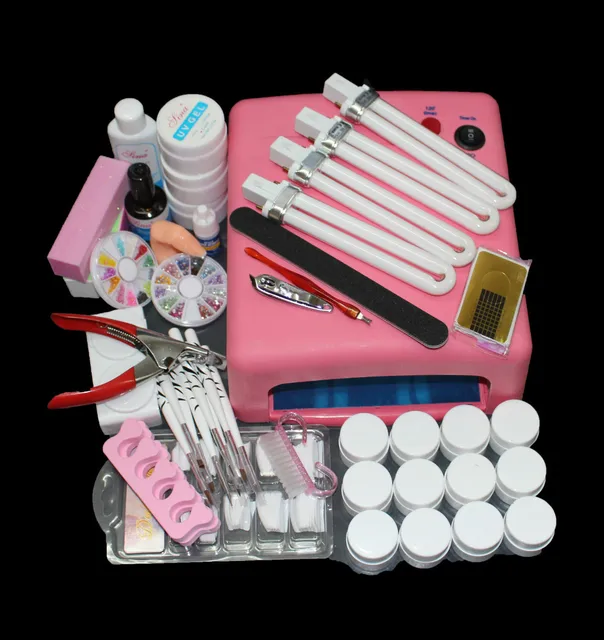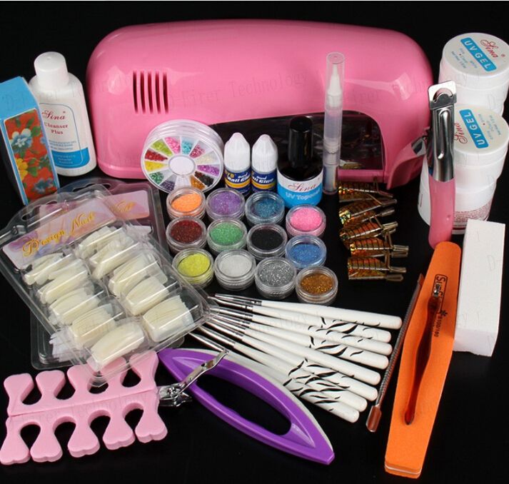 Full Pro Nail Art Uv Gel Kits Tools 36w Uv Lamp Brush Tips Glue