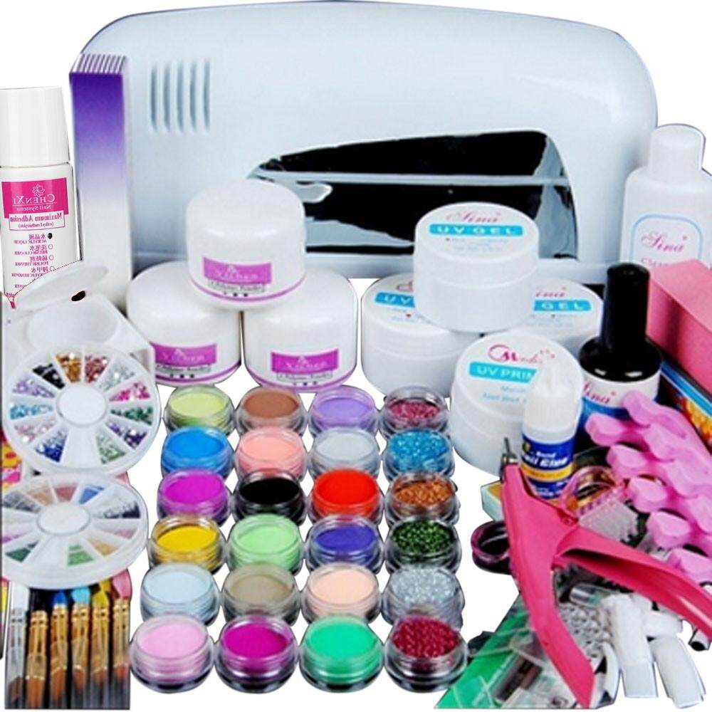 Nail Art Kit Uv Builder Gel 36w Timer Dryer Lamp Decorations Full