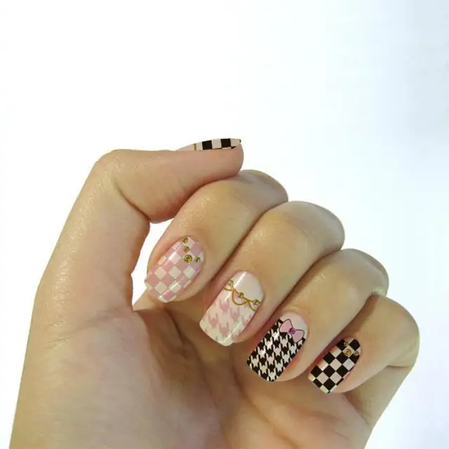 Water Transfer Korean Style Cartoon Grid Plaid Bowknot Nail Art
