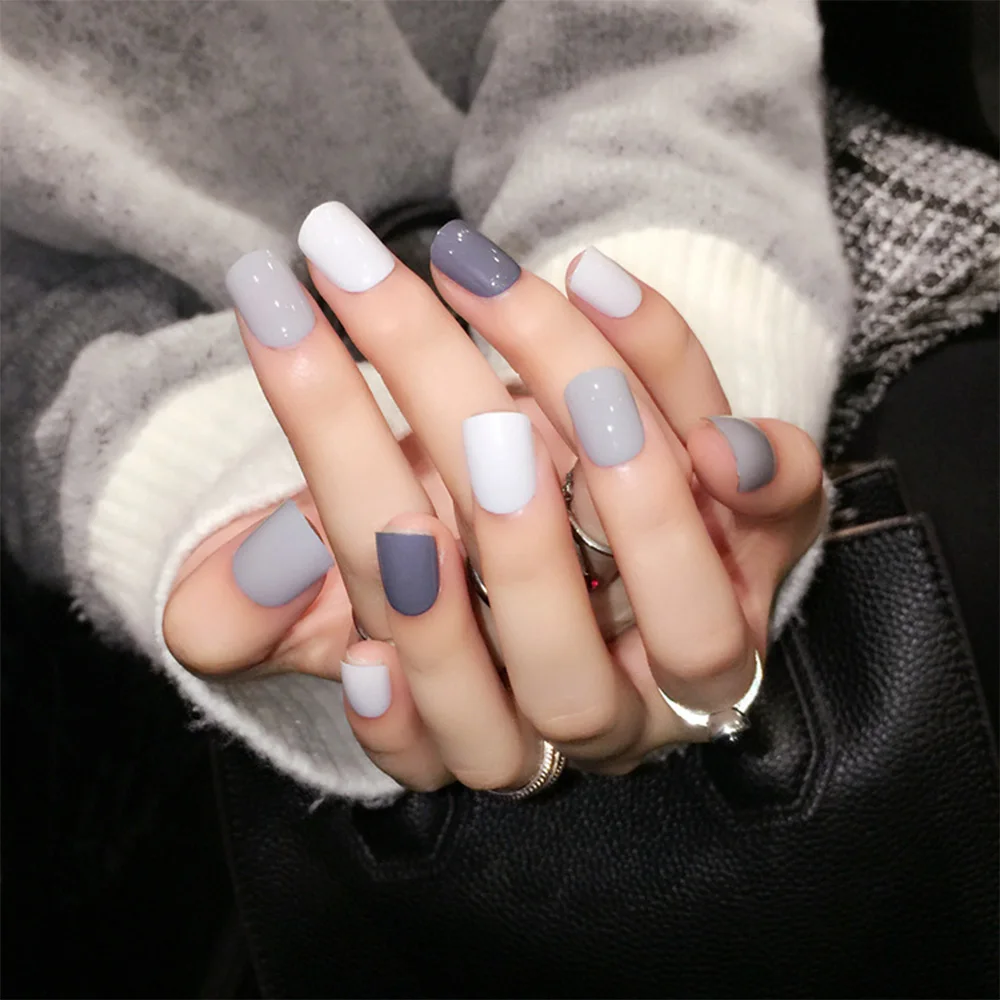 24pcs Set Daily Mix Grey False Nails Korean Style Simple Fake Nail