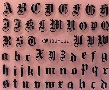Nail Art 3d Decal Stickers Alphabet Letters Black Hbjy029