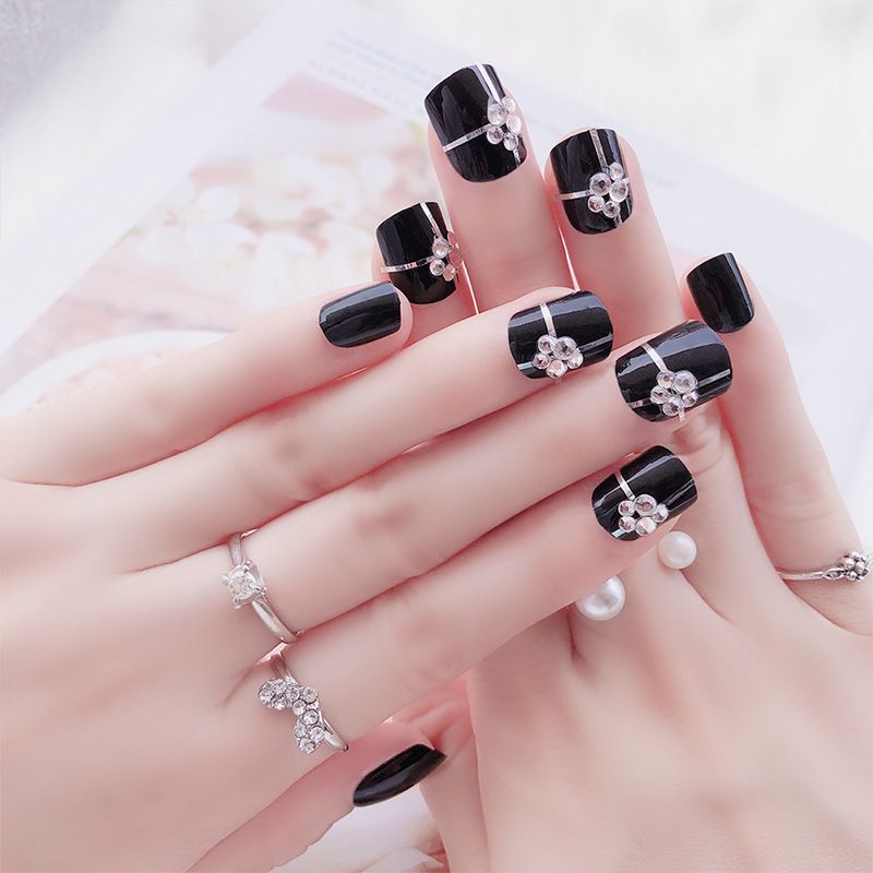 24pcs Set Long Design Wedding Bride Nail Art Tips Rhinestone Decal