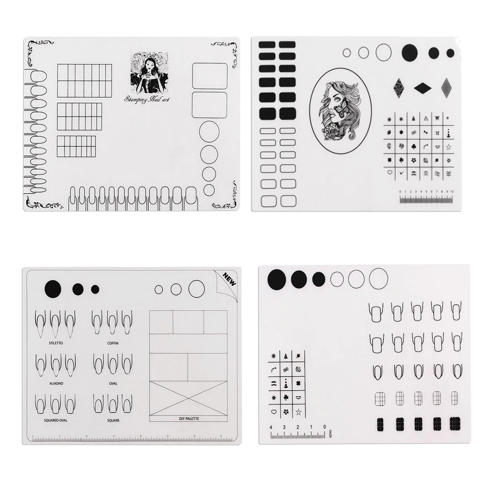 4 Style Mini Silicone Stamping Mat Nail Practice Fingernails