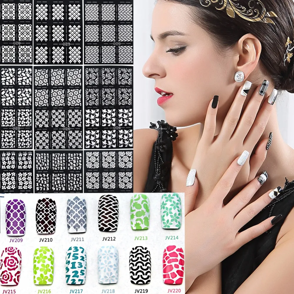 12 Tips Sheet Nail Art Stencil Stickers Mesh Pattern Nail Vinyls
