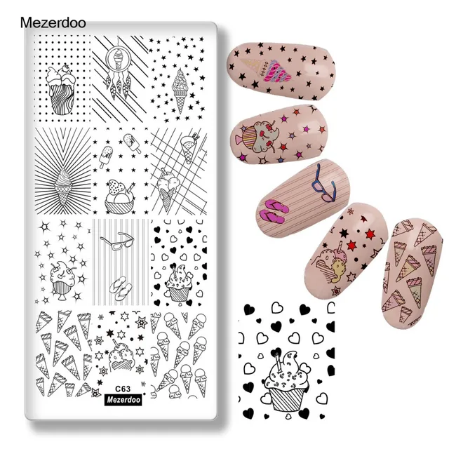 Cute Ice Cream Nail Stamping Plates Floral Geometric Lovely Star