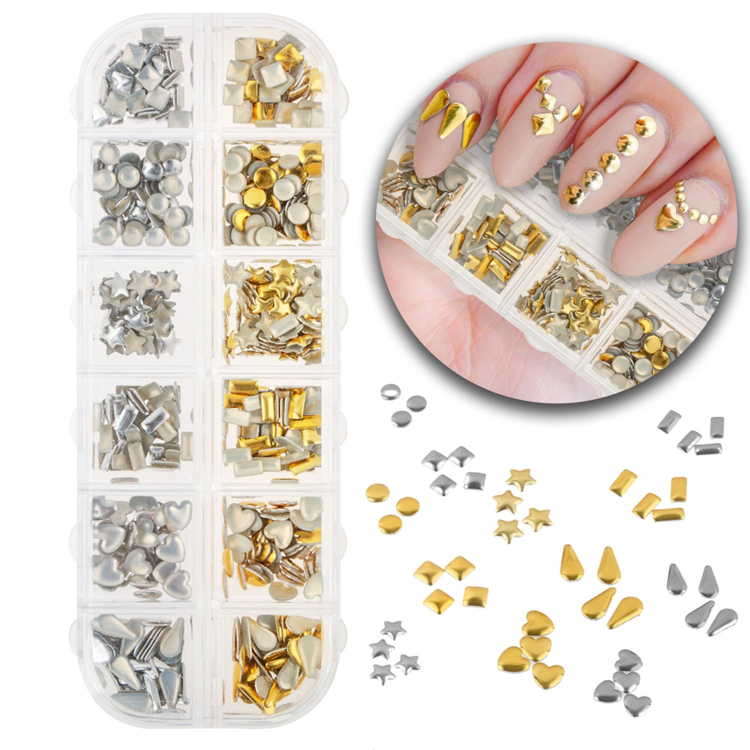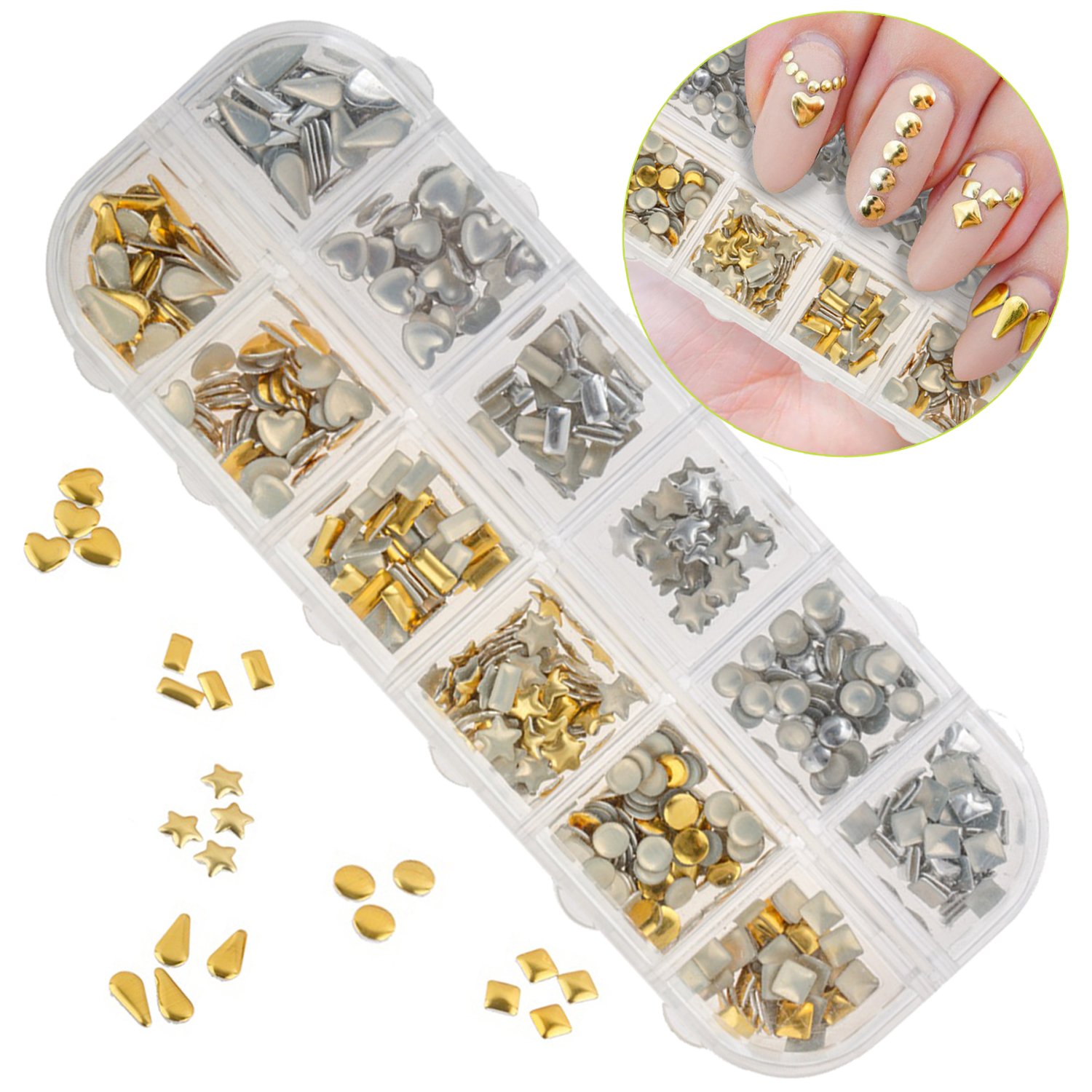 Amazon Com Eft Gold Silver Nail Art Metal Studs Rhinestone Tips