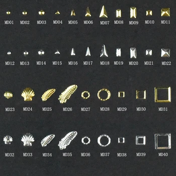 120pcs Mixed Shape Lot Nail Art Tips Gold Silver Rivet Metal Studs