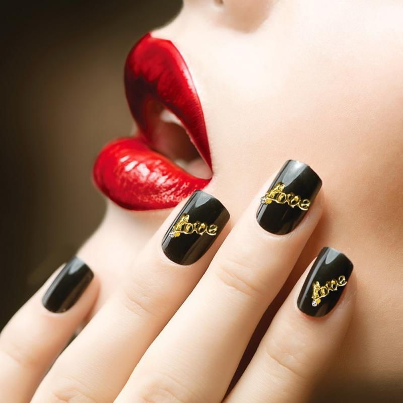 Gold Cute Love Metal Alloy Rhinestone Sticker Nail Art Metal Sticker