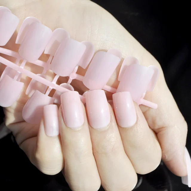 24pcs Candy Light Baby Pink Color Fashion Fake Nails Acrylic Long