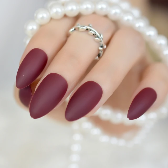 New 24pcs Matte False Nail Pointed Soft Wine Red Fake Stiletto Nails