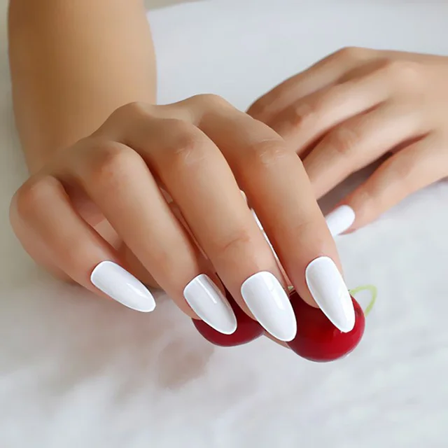 24pcs Set Almond Nail Tips White Full Cover Stiletto Fake Nails
