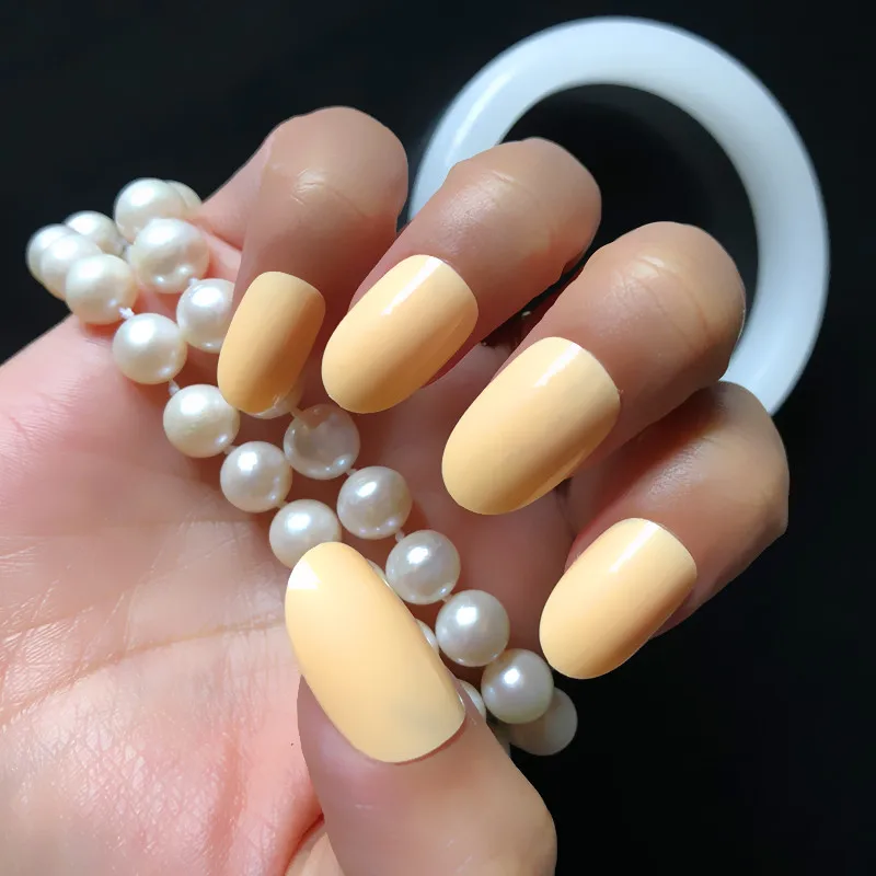 Medium Oval Shaped False Nails Milk Yellow Thanksgiving Nail Art