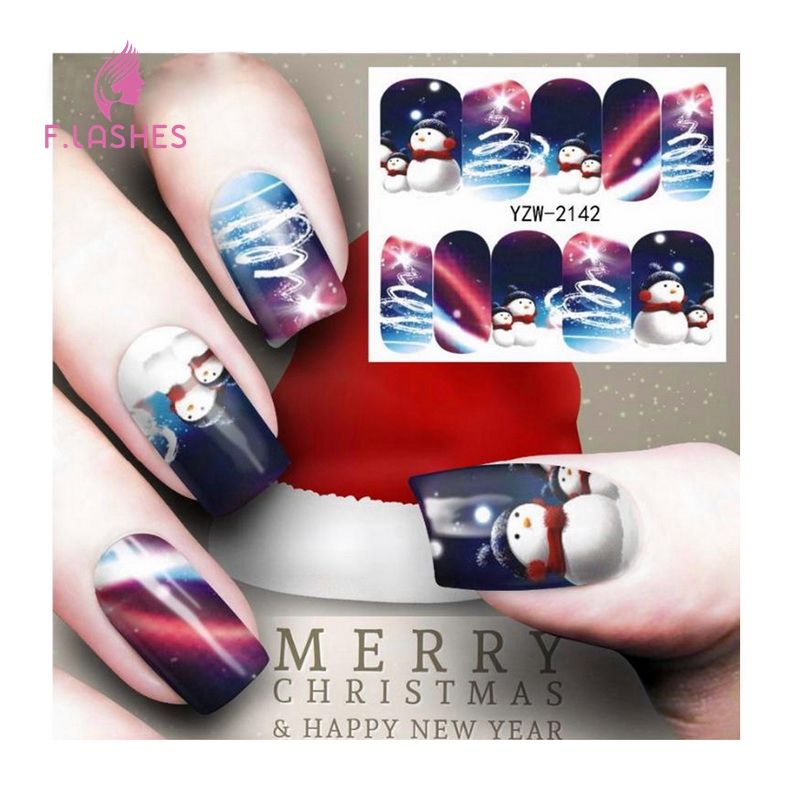 2018 Christmas Water Transfer Sticker Snowman Printing Fashion Nail