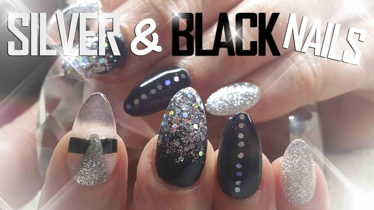 Easy Party Nail Art Black And Silver Glitter Nails Diseno De
