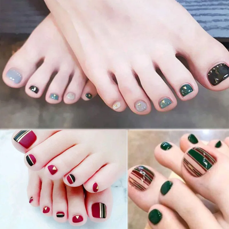 2018 New Hot 24 Pcs Set Fresh Summer Style 3d Toe Fake Nails Foot